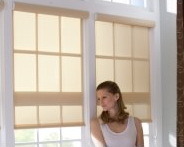 Combined in one unit, The Twin Shade is a fashionable Roman Shade in the front with a practical Roller Shade in the back that acts as a movable lining.
